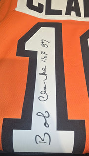 Officially licensed Mitchell & Ness jersey hand-signed by Flyers legend Bob Clarke - authenticated by Dynasty Sports during a private autograph signing on October 1, 2025