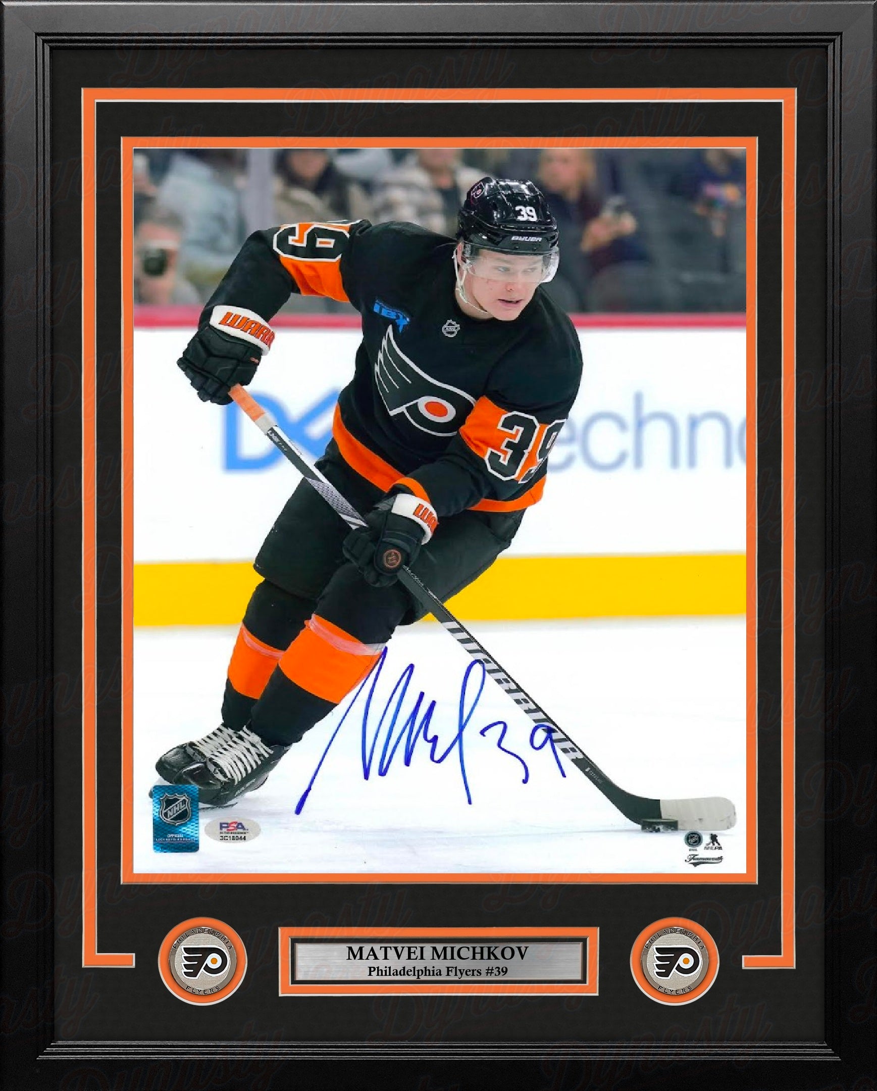 Matvei Michkov in Black Philadelphia Flyers Autographed 11" x 14" Framed Hockey Photo