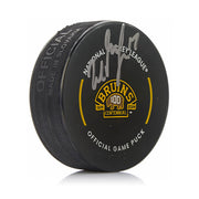 This officially licensed hockey logo puck has been hand-signed by Bruins hockey star Milan Lucic. Is has been authenticated by Dynasty Sports during a public autograph event on October 7, 2023.
