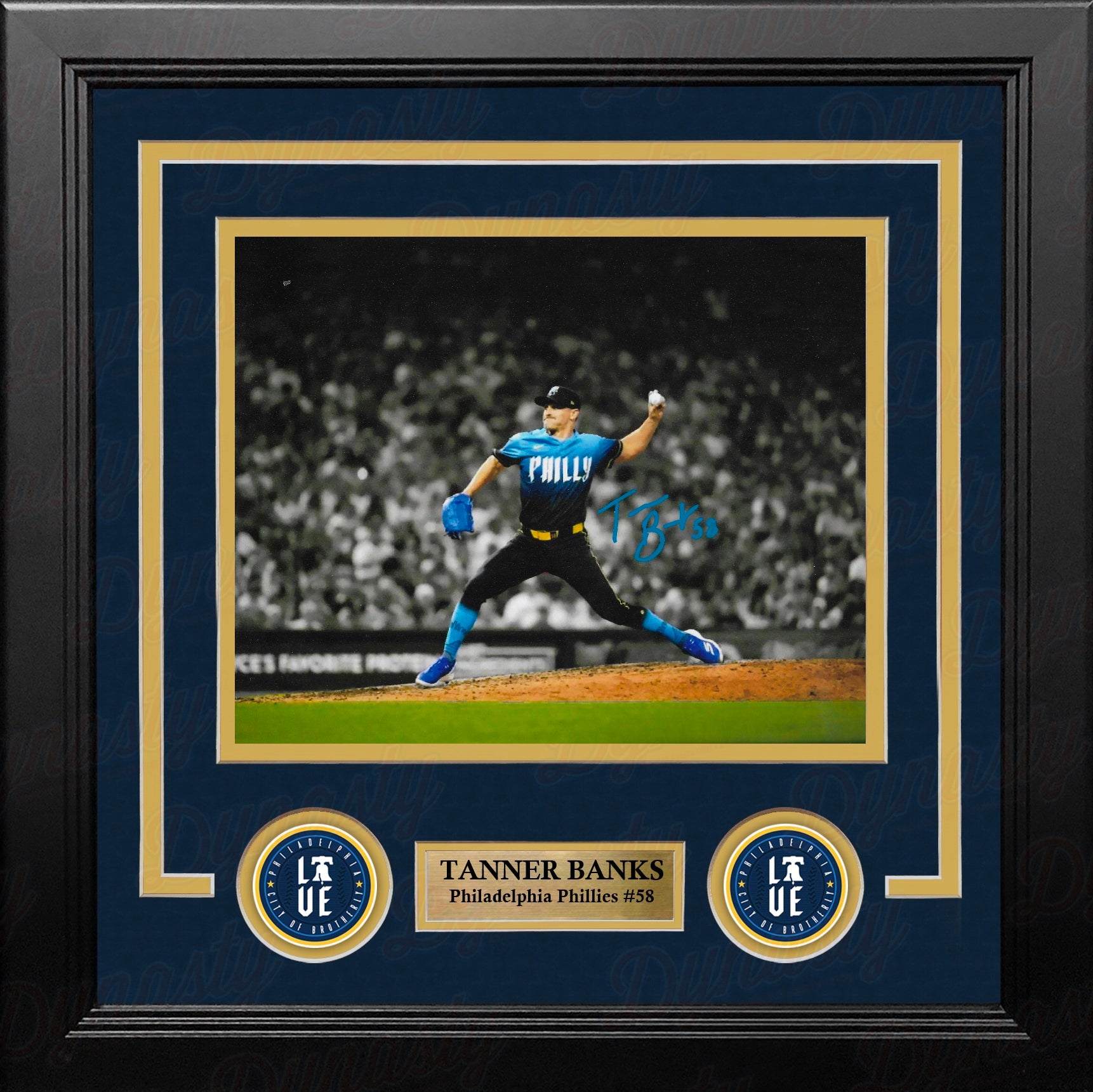 This photo has been hand-signed by Philadelphia Phillies star pitcher Tanner Banks. It has been authenticated by Dynasty Sports during a public autograph appearance.