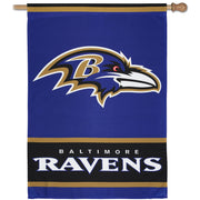 Officially licensed flag. Designed to hang vertically from an outdoor pole or inside as wall decor. Durable polyester flag measures 27" x 37" with a 2.5" pole sleeve. Machine washable. Poles and hardware available separately. Made in USA.