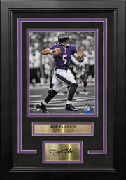 Joe Flacco Spotlight Action Baltimore Ravens 8x10 Framed Football Photo with Engraved Autograph