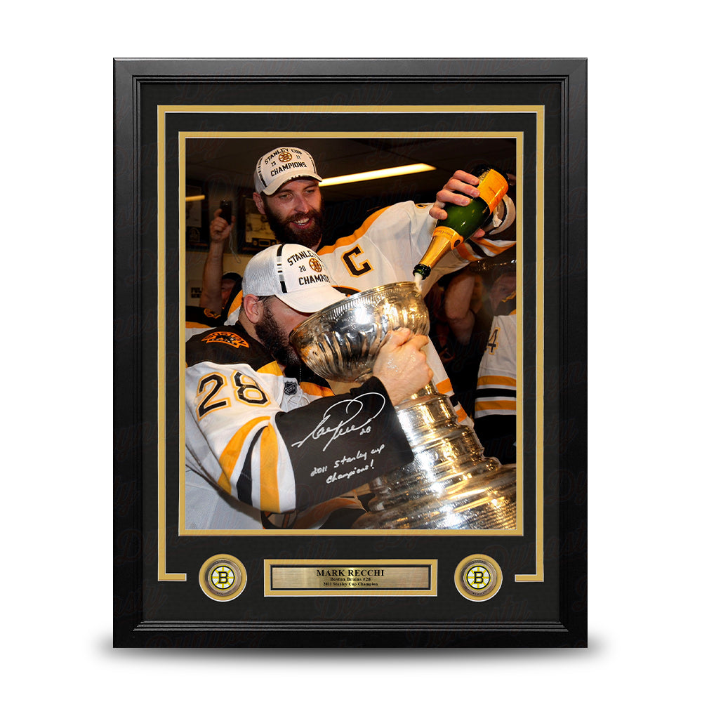Mark Recchi Drinks from the Cup Boston Bruins Autographed 16"x 20" Framed Photo Inscribed 2011 Stanley Cup Champions