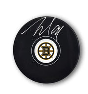 This officially licensed hockey logo puck has been hand-signed by Bruins hockey star Nikita Zadorov. It has been authenticated by Dynasty Sports during a public autograph appearance.