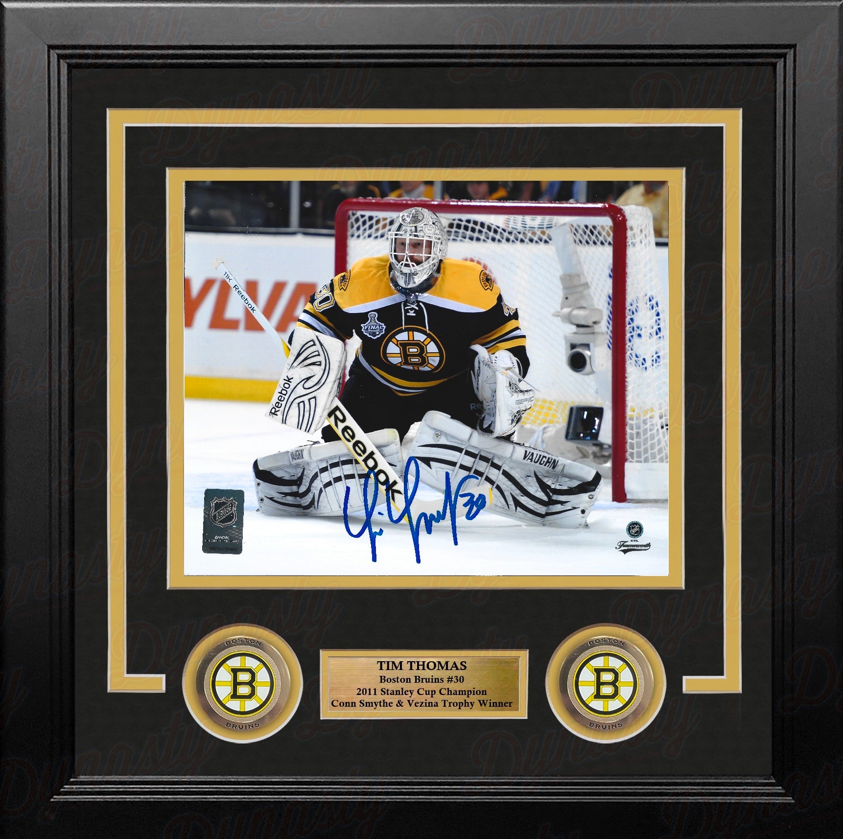 Tim Thomas 2011 Stanley Cup Finals Action Boston Bruins Autographed 8" x 10" Framed Hockey Photo