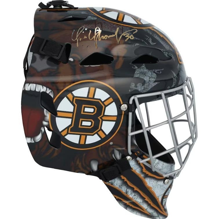Autographed mask from Bruins goalie legend Tim Thomas - authenticated by Dynasty Sports during a public autograph signing on April 27, 2025