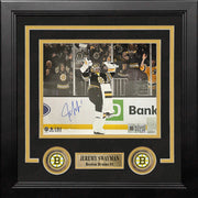 Jeremy Swayman Celebration Boston Bruins Autographed 8" x 10" Framed Hockey Photo