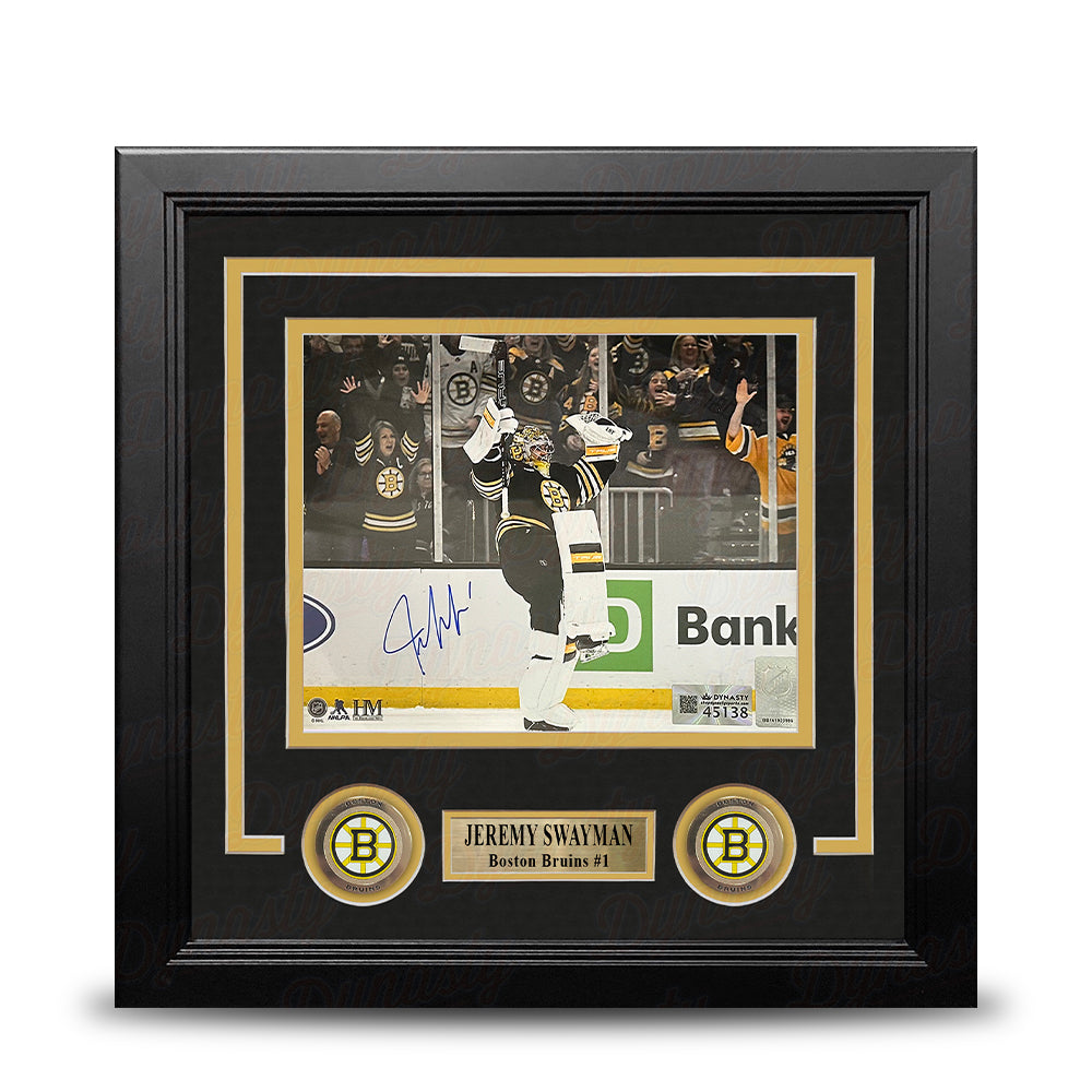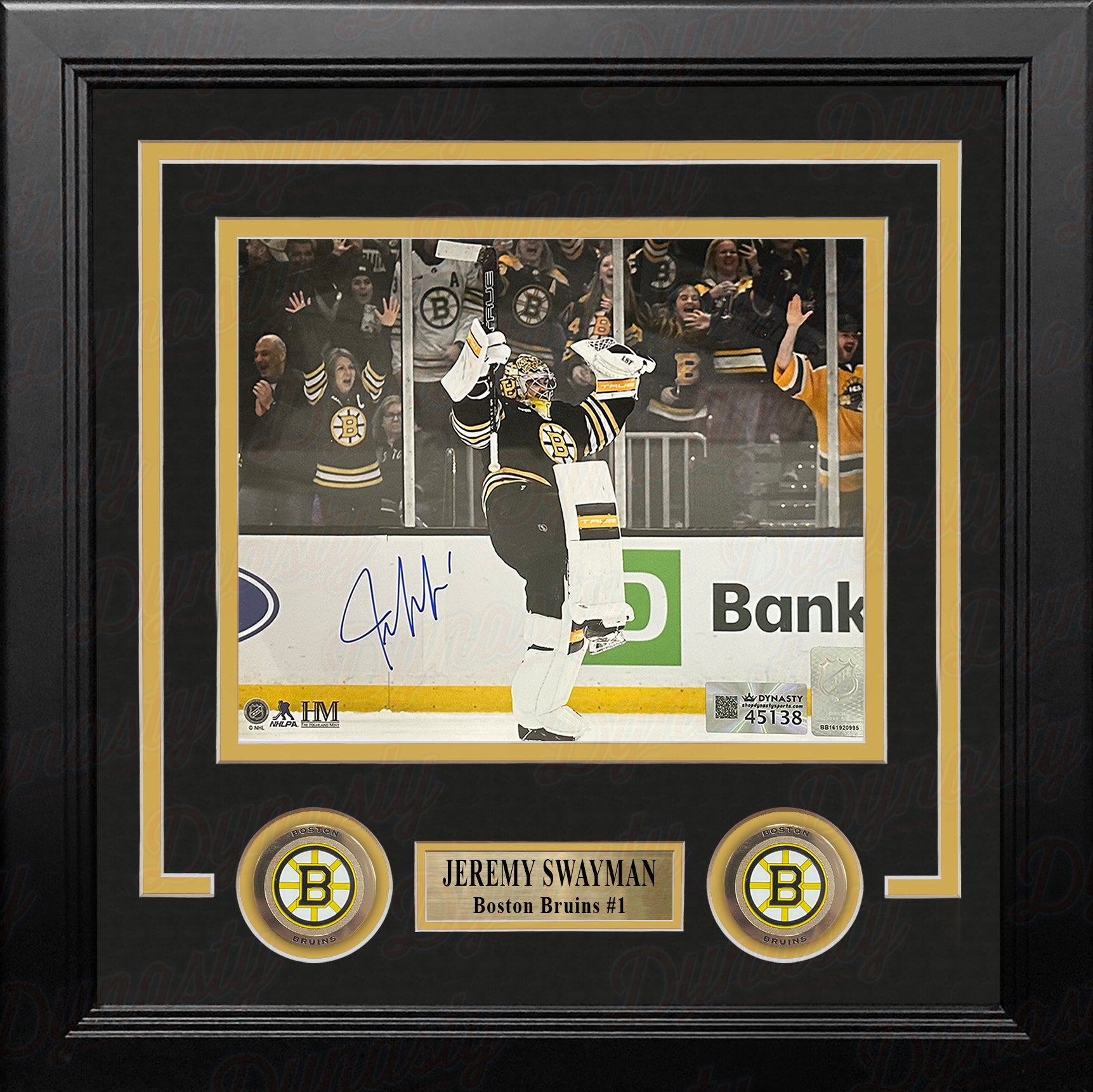 • Hand-signed by Boston Bruins star goalie Jeremy Swayman