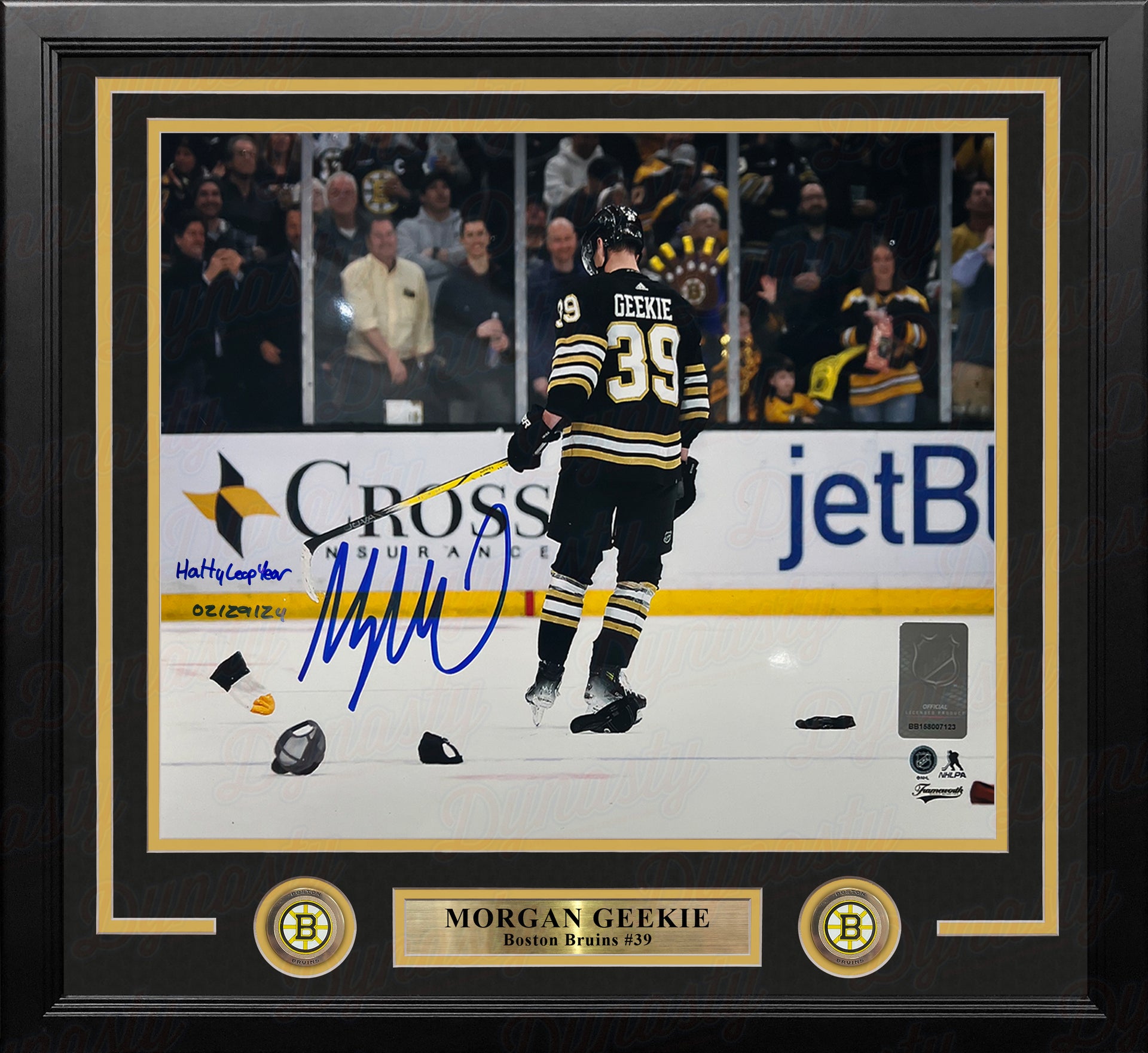 Morgan Geekie Hat Trick Boston Bruins Autographed 11" x 14" Framed Hockey Photo - Hatty Leap Year