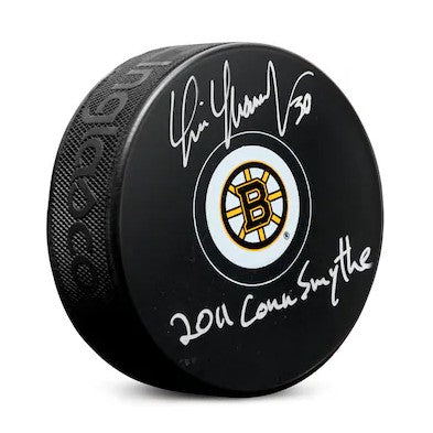 Tim Thomas Boston Bruins Autographed Logo Puck Inscribed 2011 Conn Smythe