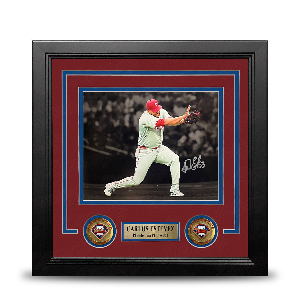 Carlos Estevez Kamehameha Pose Autographed Philadelphia Phillies 8" x 10" Framed Blackout Photo