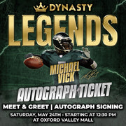 Mike Vick Autograph Ticket: $75- Entitles you to receive one autograph on your item from NFL legend, Mike Vick.