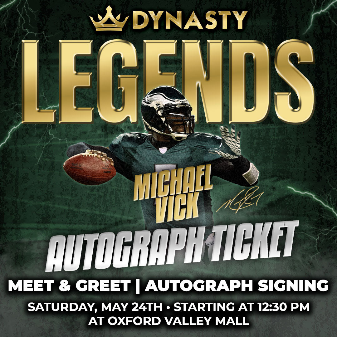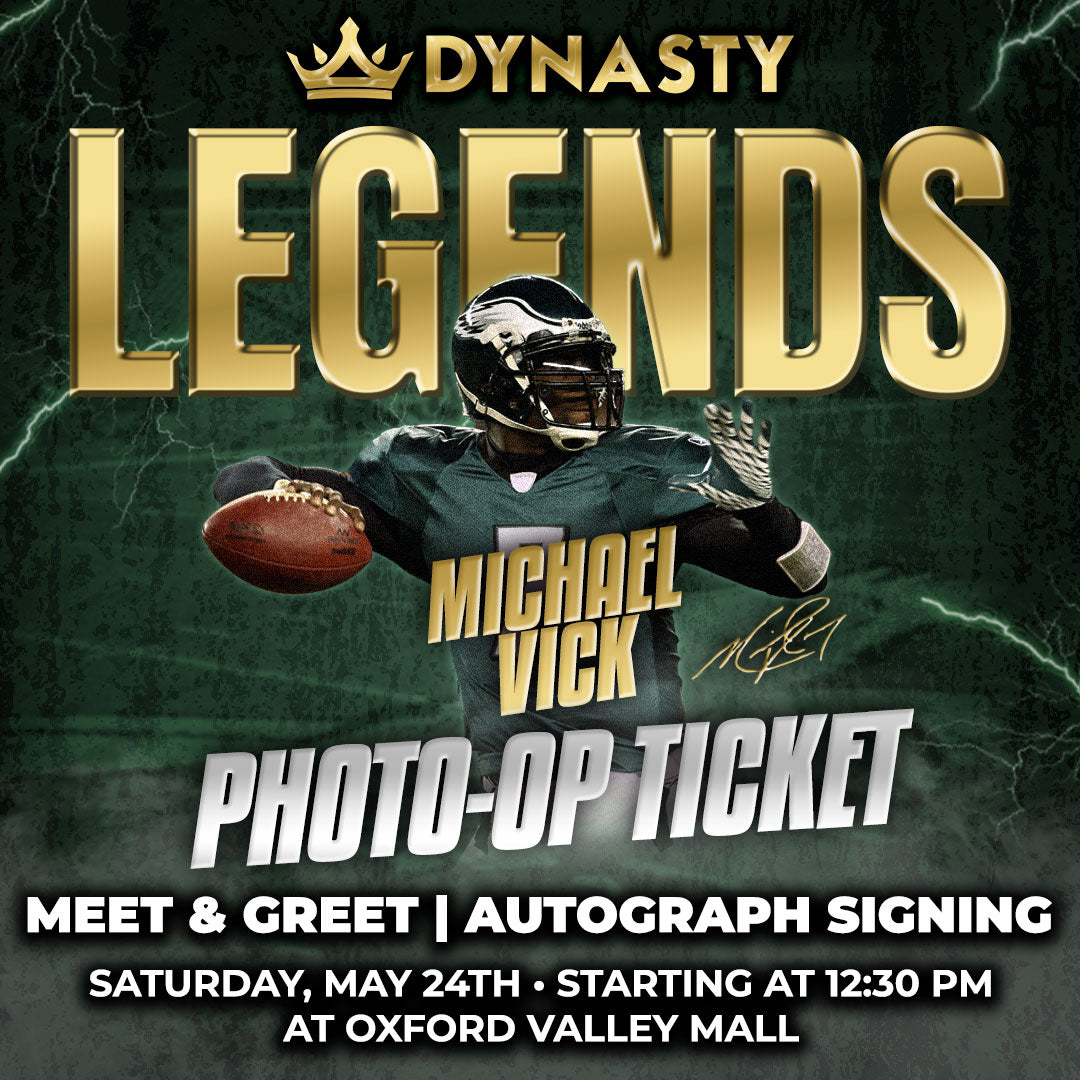 NFL star, Mike Vick has officially been locked in to appear on Saturday, May 24, 2025 at our Oxford Valley Mall location. Mike will be appearing with fellow coach and Eagles legend, DeSean Jackson. The dynamic duo will be appearing together beginning at 12:30pm as they both sign autographs and take photos with the fans who attend.