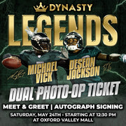 Mike Vick & Desean Jackson Dual Photo-Opportunity Ticket: $160-Entitles you to receive one posed photo-op with Eagles legends, Mike Vick & DeSean Jackson. Our photographer will take your photo posing with the electric duo. You will receive a printed copy of the photo within a few days of the event. Additionally, all photos will be posted on our Facebook page.