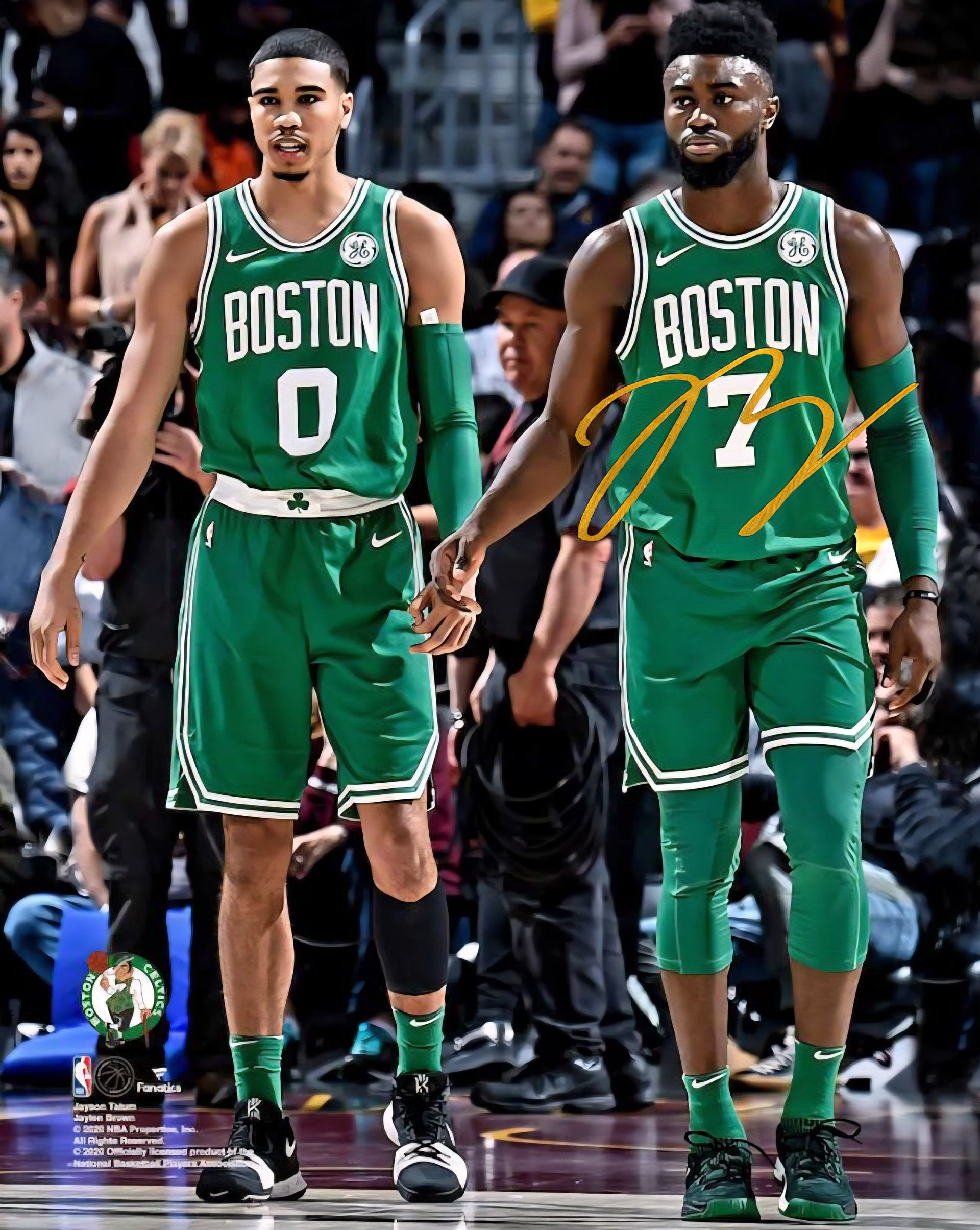 Score an autographed hand-signed, Jaylen Brown signature on this officially licensed photo of Jaylen and teammate, Jayson Tatum.