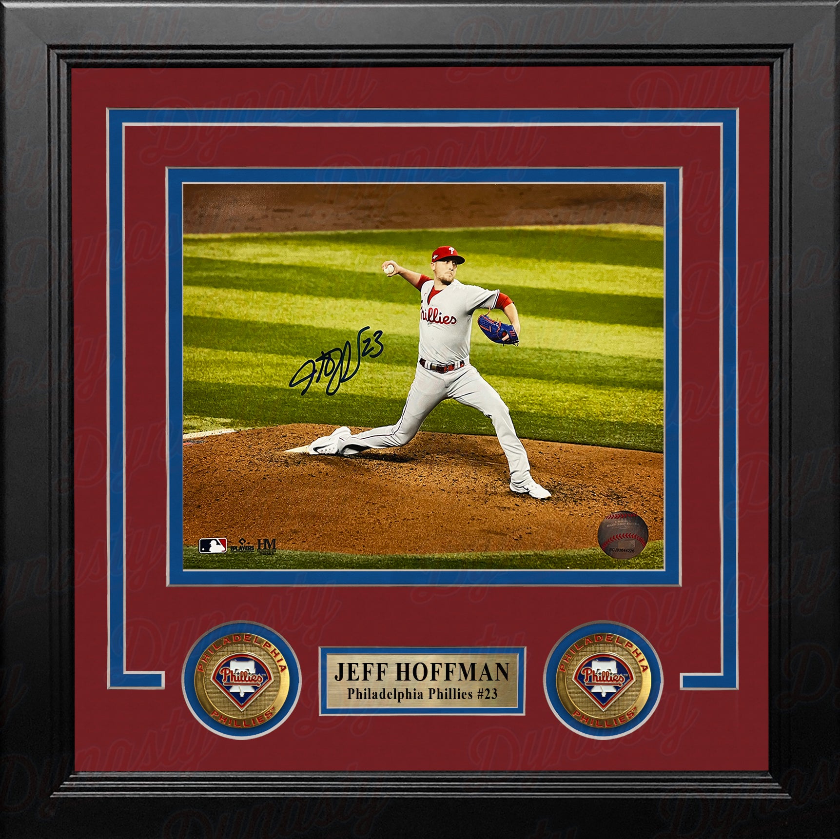 This officially licensed photo has been signed by Philadelphia Phillies star pitcher Jeff Hoffman. It has been authenticated by Dynasty Sports during a public autograph experience.