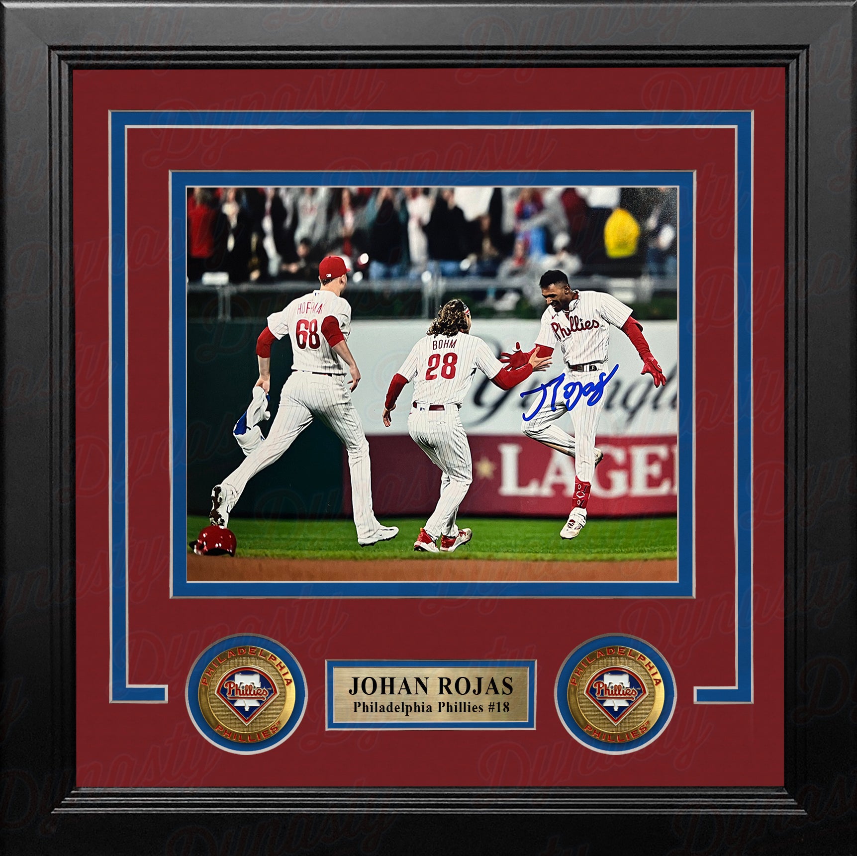 This photo has been hand-signed by Philadelphia Phillies star Johan Rojas. It has been authenticated by Dynasty Sports during a public autograph appearance on October 4, 2024.