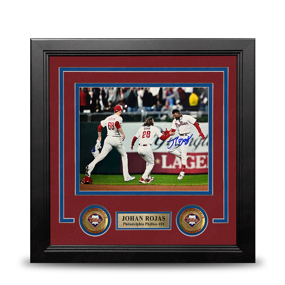 Johan Rojas 2023 Wild Card Clinch Philadelphia Phillies Autographed 8" x 10" Framed Baseball Photo
