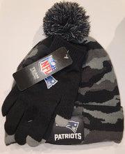 Keep warm on those cold, wintry days at the stadium with the camo pom knit winter hat with matching glove set.
