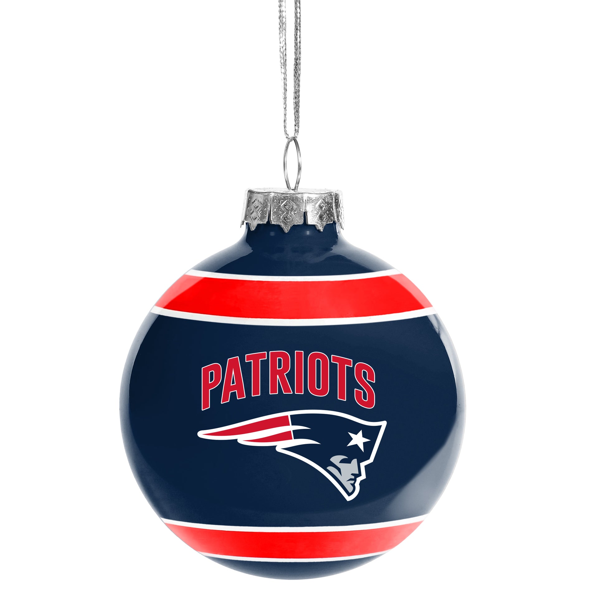 Deck the halls in Patriots cheer during the holidays with this New England Patriots Glass Ornament.