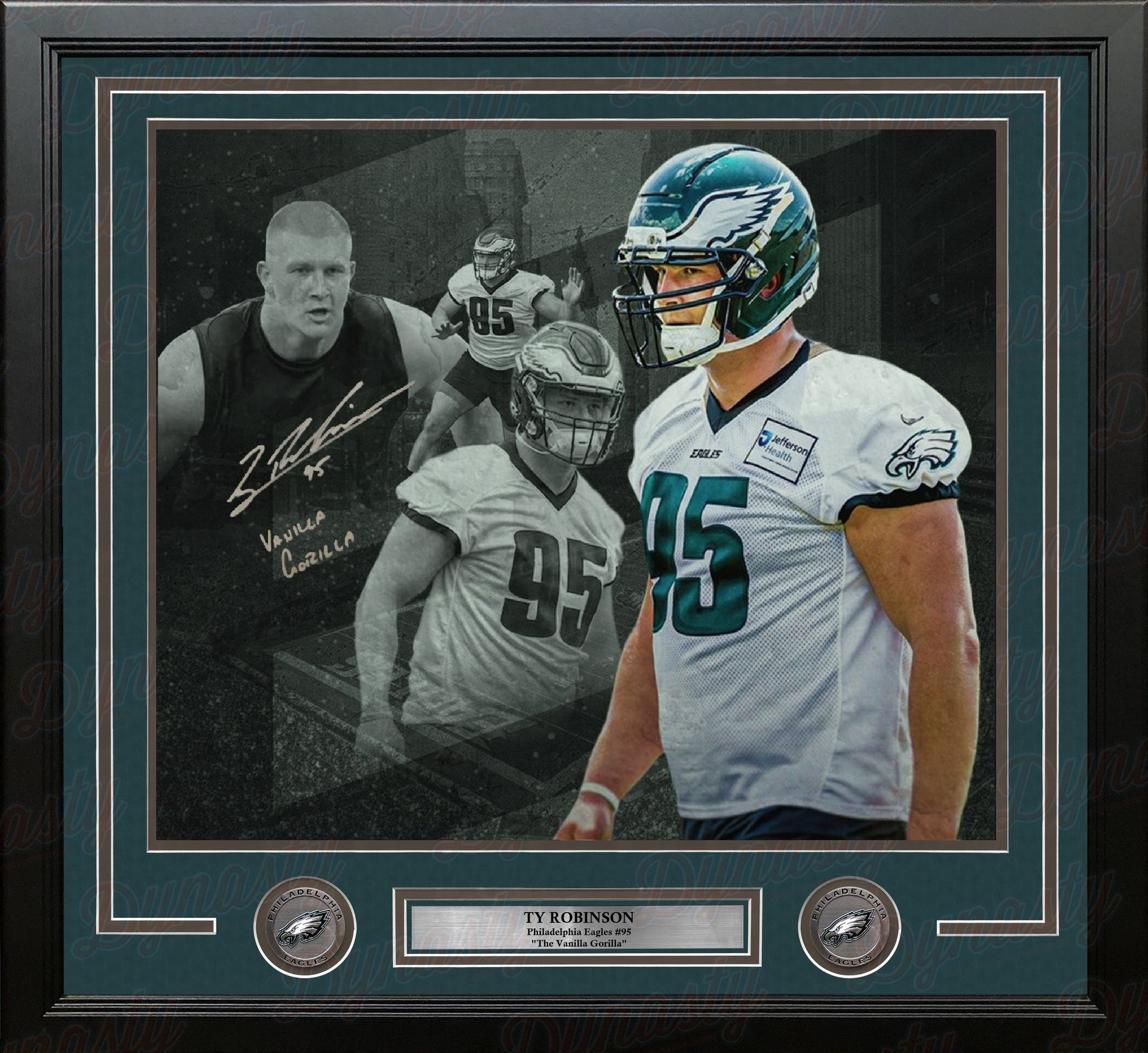 Ty Robinson Philadelphia Eagles Autographed 16" x 20" Framed Collage Photo Inscribed Vanilla Gorilla