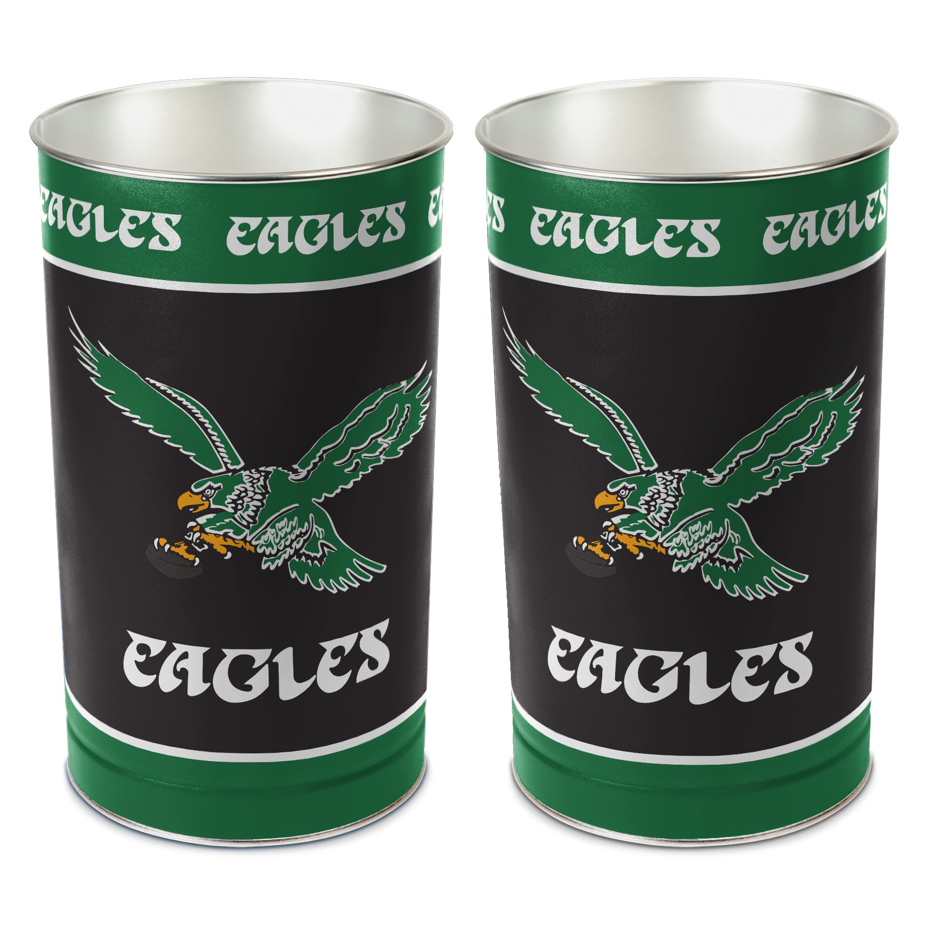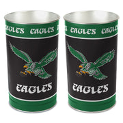 Support your favorite football team with the officially licensed NFL trash can. These metal wastebaskets are a great way to decorate a room or office. Wastebaskets are 15" tall by 10.25" diameter.