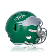 This officially licensed full-size helmet has been hand-signed by Philadelphia Eagles superstar running back Saquon Barkley. It has been authenticated by Beckett.