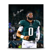 This blackout-style photo has been signed by Philadelphia Eagles defensive star Bryce Huff. It has been authenticated by Dynasty Sports during a public autograph experience.