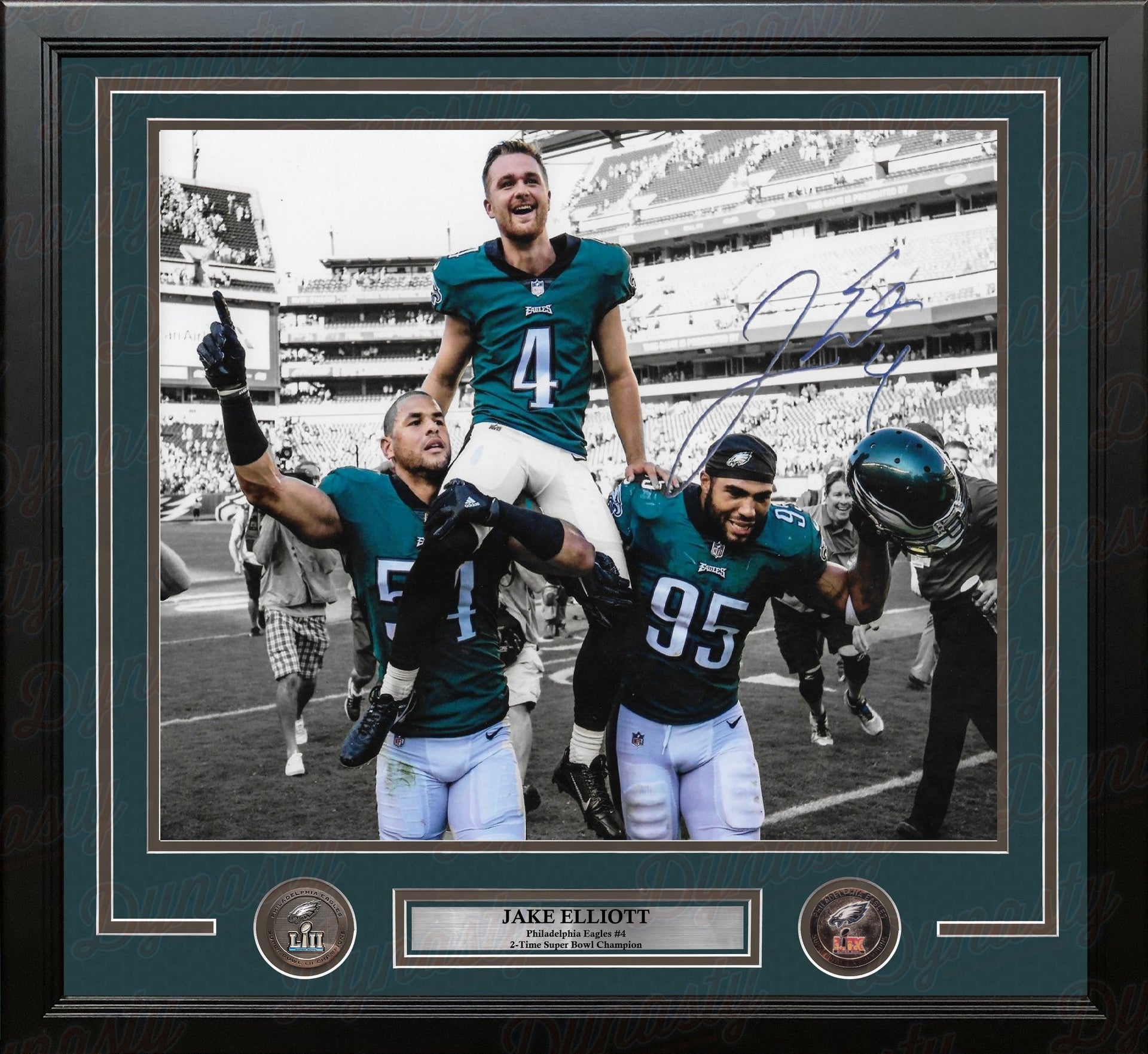 This photo has been hand-signed by Philadelphia Eagles great and 2-time Super Bowl champion Jake Elliott. It has been authenticated by Dynasty Sports.