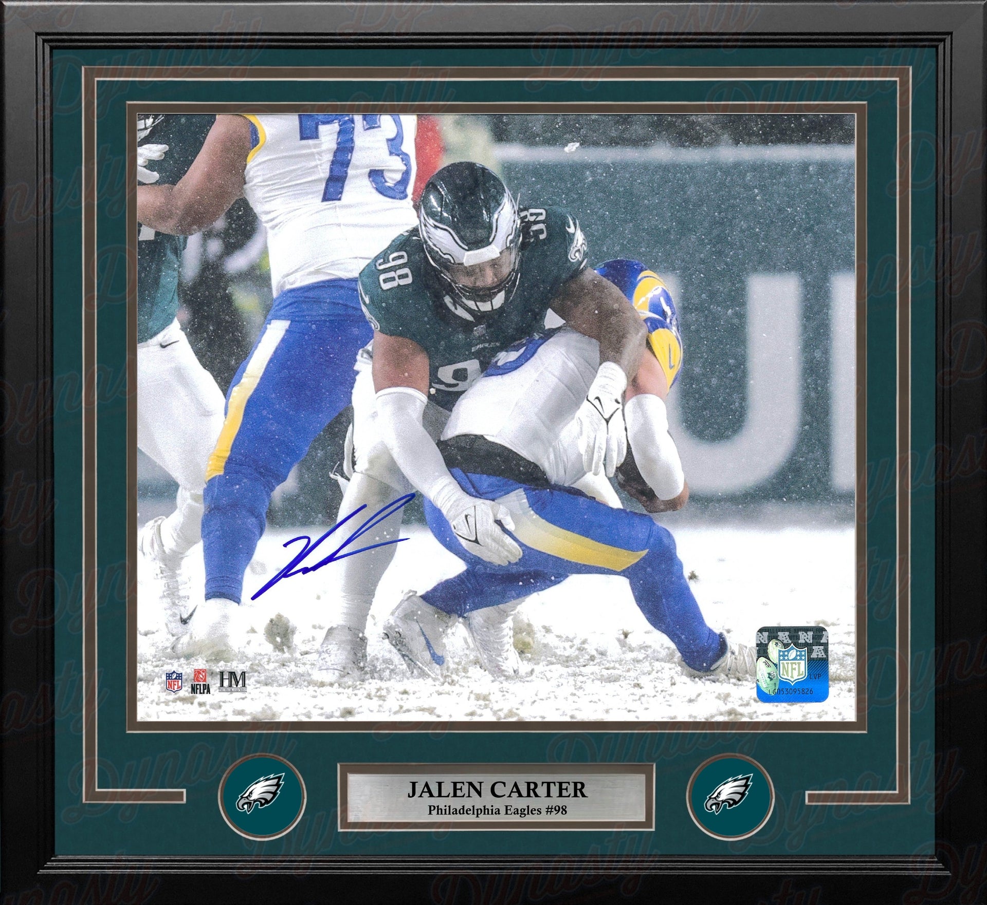 Jalen Carter Snow Bowl Sack Philadelphia Eagles Autographed 11" x 14" Framed Football Photo