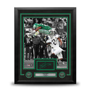 In what will be one of the most athletic plays in Philadelphia Eagles history, Saquon Barkley dazzled during the Philadelphia Eagles versus Jacksonville Jaguars game on November 3, 2024. Wearing the coveted Eagles Kelly Green jersey, Barkley juked and dodged his way through the Jaguars defense finishing off an incredible run with a backwards jump to avoid the tackle. The moment was captured perfectly while Barkley was in mid-air with two Jaguar defenders left in awe of this incredible, never before seen move. Celebrate the insane moment with the officially NFL licensed framed photo of Barkley working his magic with a special cut signature placed beneath the photo. The signature is authenticated by Beckett Authentication and was signed in kelly-green paint pent.