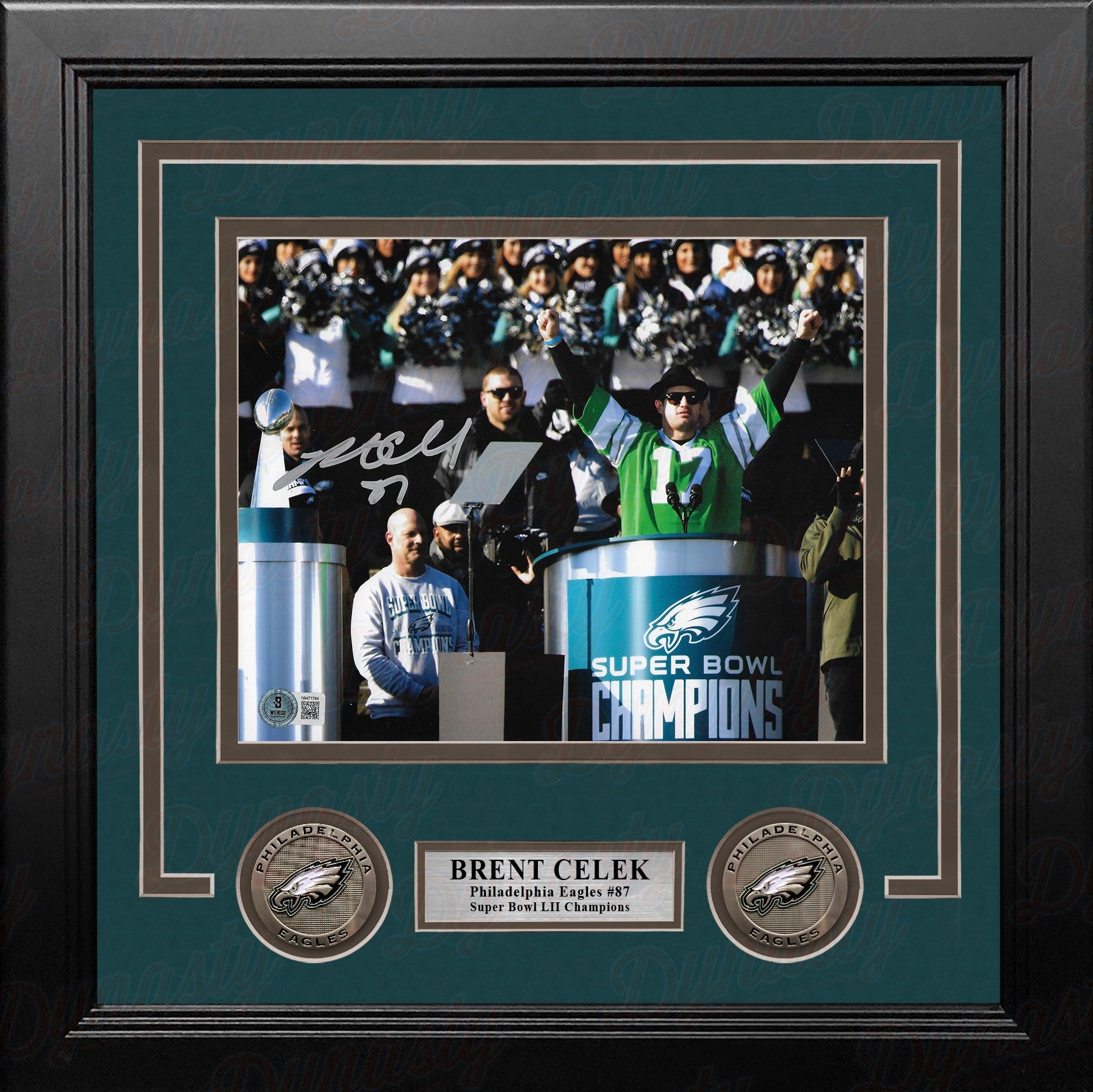 Brent Celek Super Bowl Champions Victory Speech Philadelphia Eagles Autographed 8x10 Framed Photo