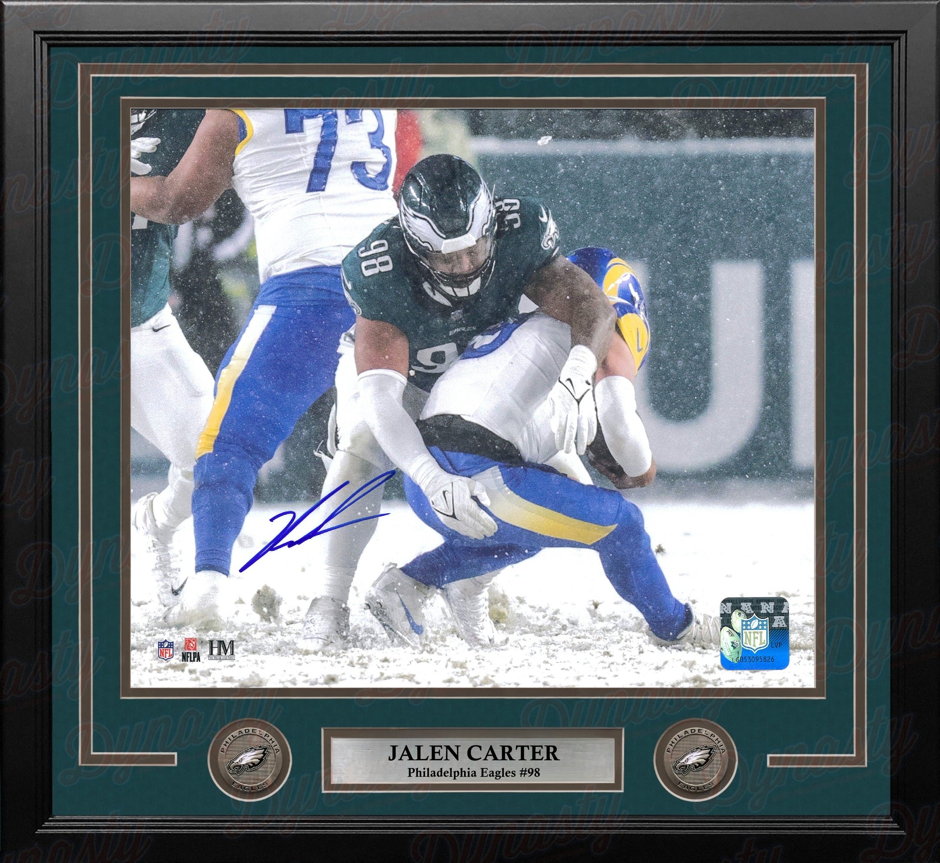 Jalen Carter Snow Bowl Sack Philadelphia Eagles Autographed 11" x 14" Framed Football Photo