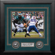 This football photo has been hand-signed by Philadelphia Eagles great Jason Peters. It has been authenticated by a Beckett serially-numbered hologram.