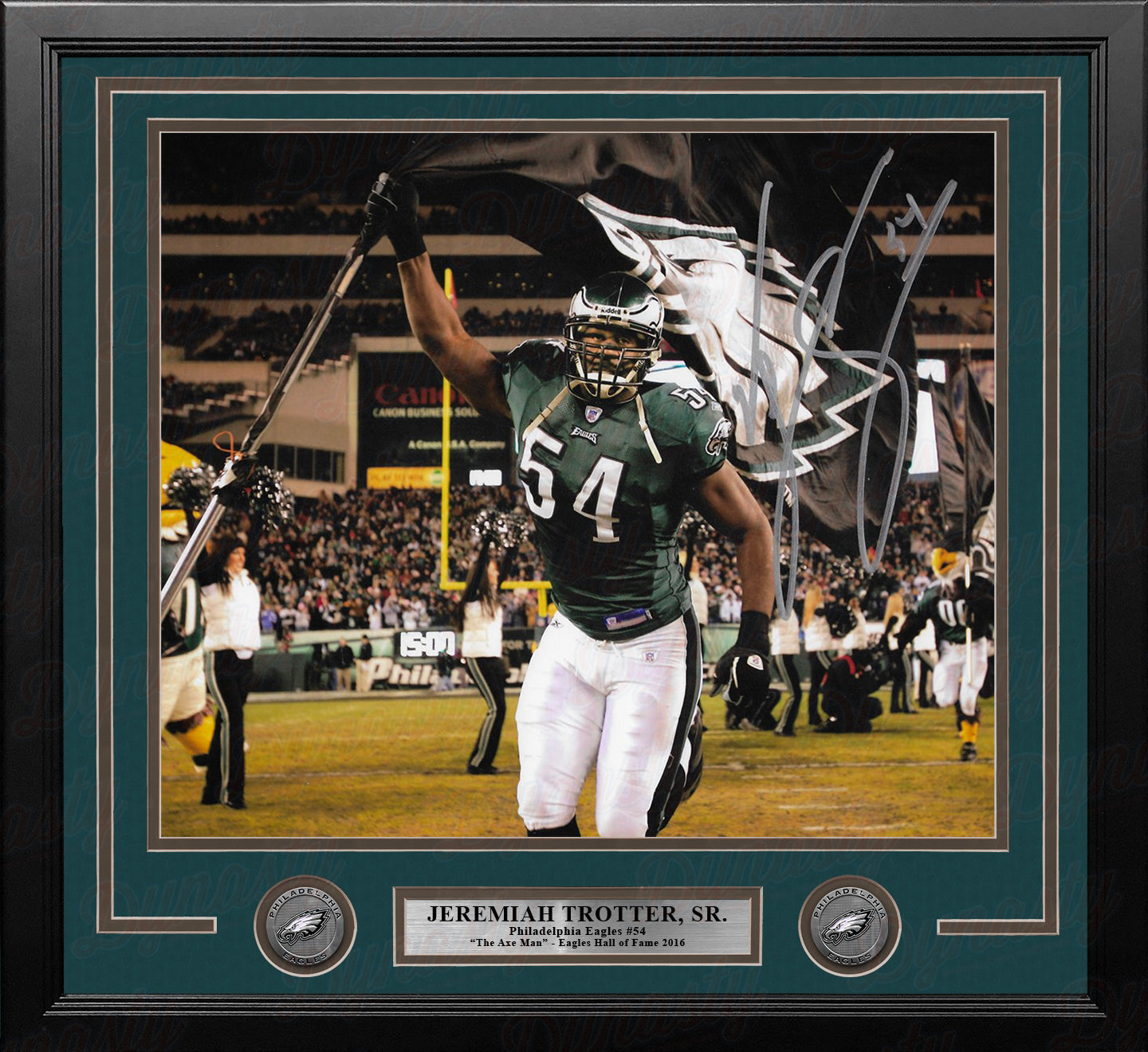 Jeremiah Trotter, Sr. Flag Philadelphia Eagles Autographed 11" x 14" Framed Football Photo