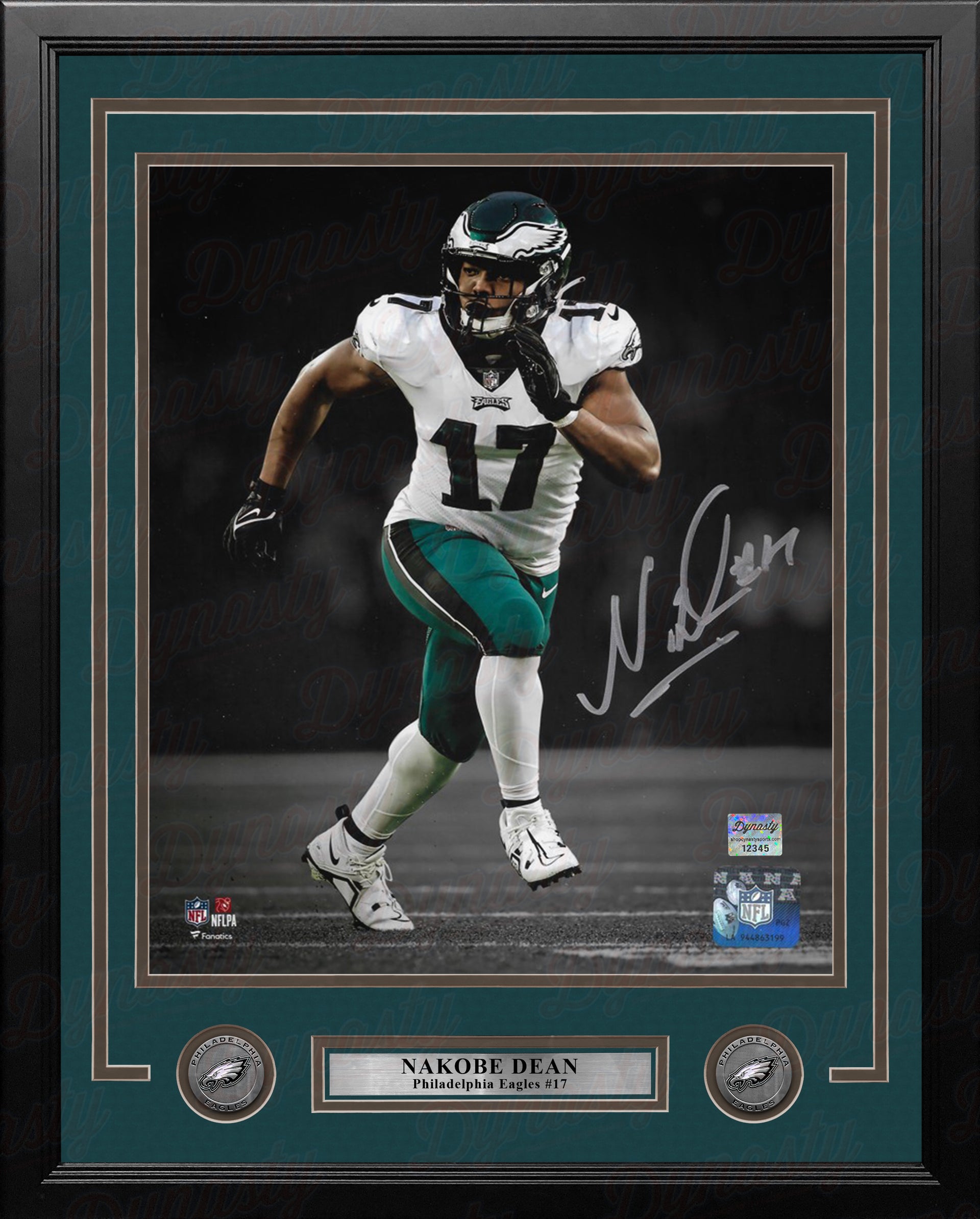 This officially licensed photo has been hand-signed by Eagles defensive star Nakobe Dean; it has been authenticated by Dynasty Sports.
