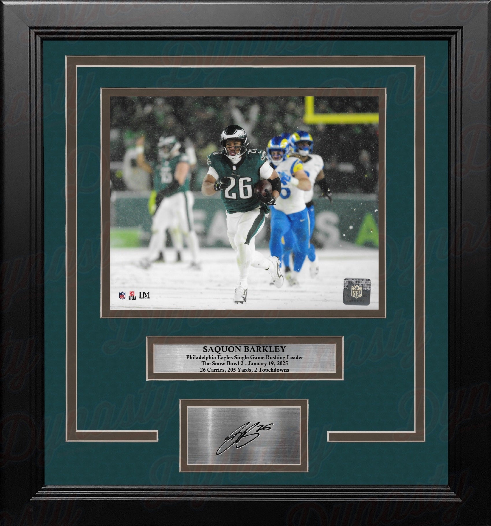 Saquon Barkley Snow Bowl Action Philadelphia Eagles 11" x 14" Framed Photo with Engraved Autograph