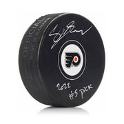 Cutter Gauthier Philadelphia Flyers Autographed NHL Hockey Logo Puck with #5 Pick Inscription