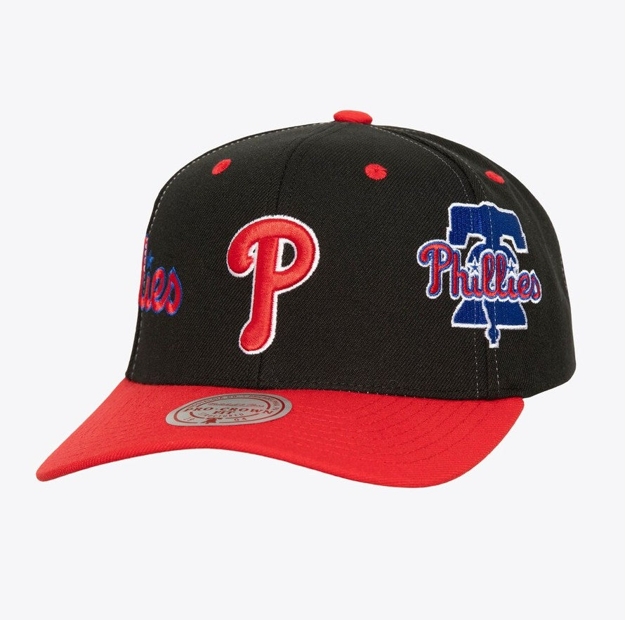 Style is always cool, and that is why you'll love the Black Mitchell & Ness Overbite Pro Philadelphia Phillies Snapback Hat.