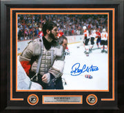 This photo has been hand-signed by Philadelphia Flyers goalie legend Ron Hextall. It has been authenticated by Dynasty Sports during a public autograph appearance.