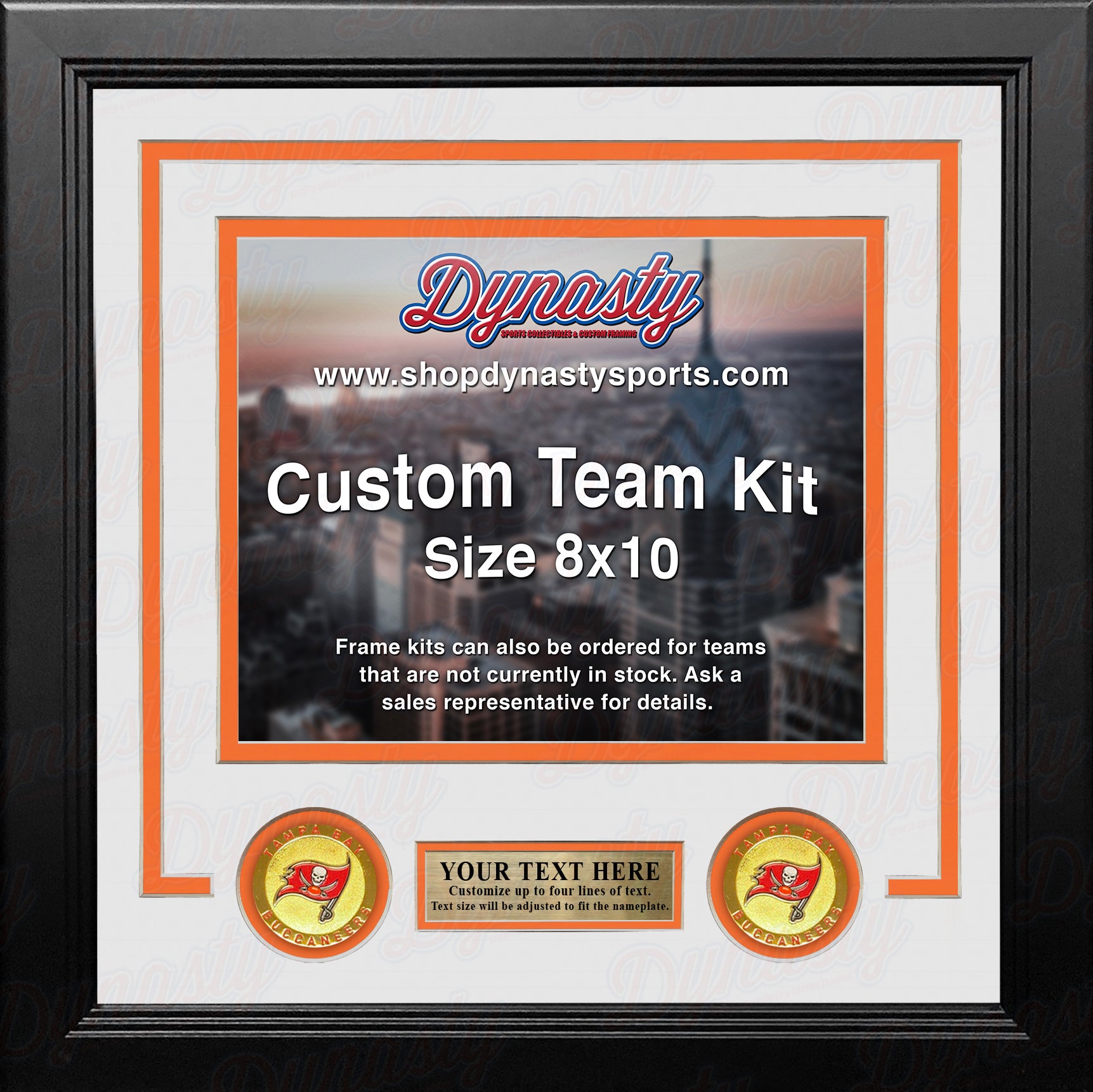 This custom photo frame can be crafted in your favorite team's colors in a variety of sizes and styles. Add upgraded matting, UV-protective glass, a custom nameplate, and/or team logo medallions to give your frame a signature look!
