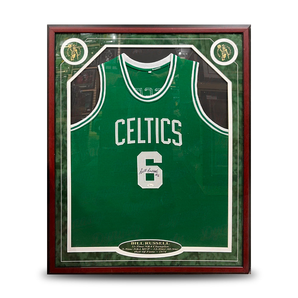 This basketball jersey has been hand-signed by Boston Celtics Hall-of-Fame legend Bill Russell. All autographed memorabilia includes a certificate of authenticity and matching hologram.