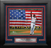 Picture of the Red Sox legend 'Big Papi' David Ortiz in front of the American flag in 2013