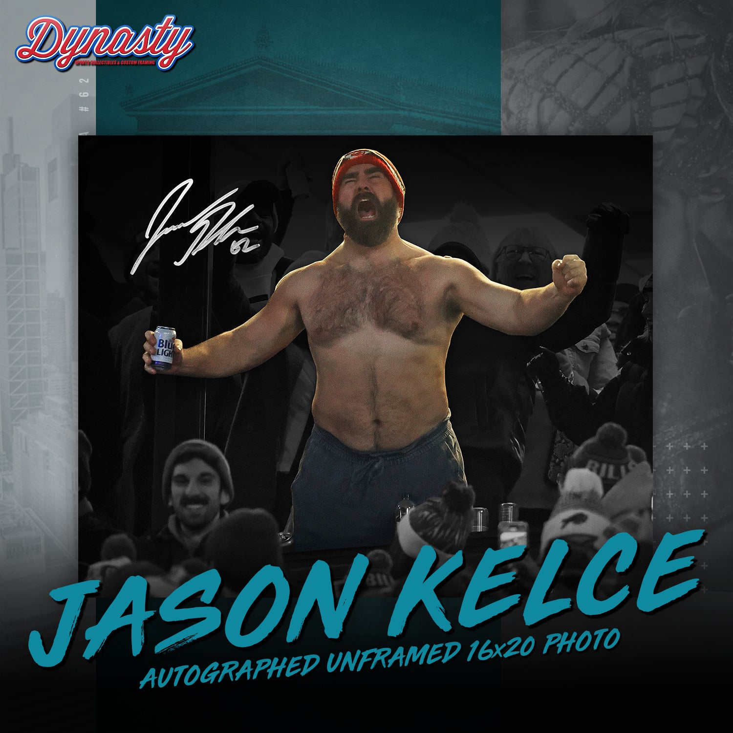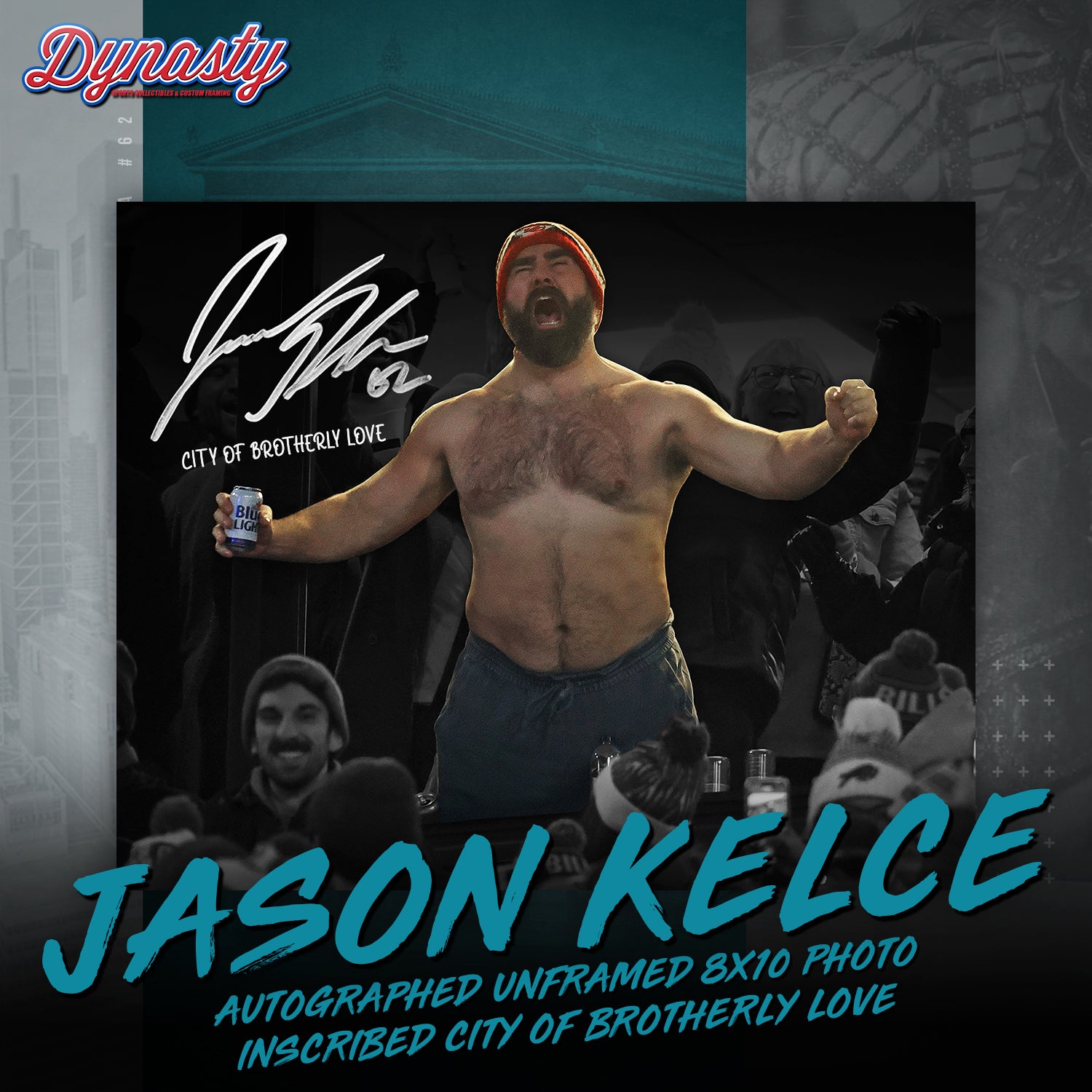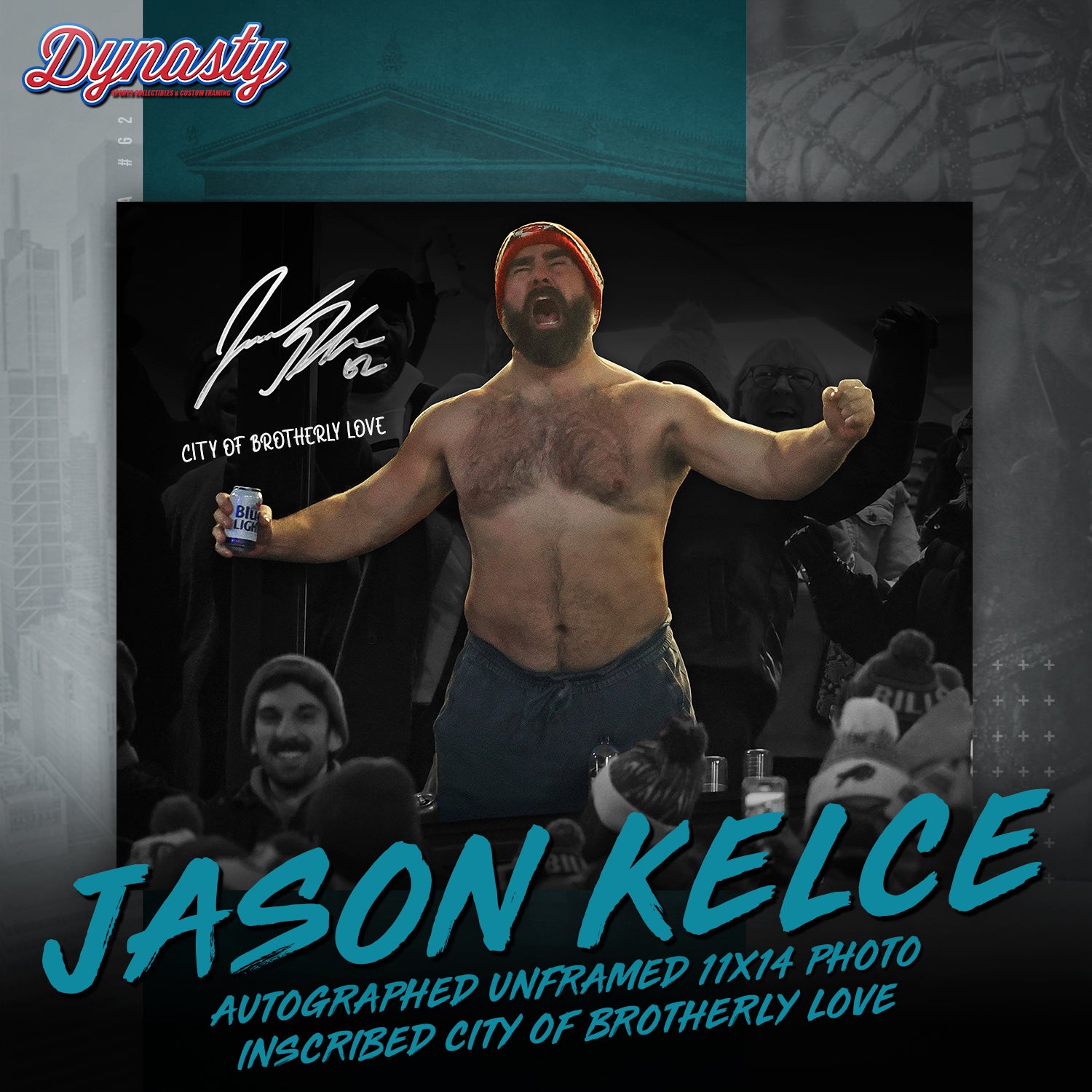 The Man, The Myth, The Legend. After an amazing career spanning 13 season in the National Football League, Jason Kelce has officially hung up his jersey for the last time. The Eagles legend will forever be one of the most popular athletes to ever play in Philadelphia. To celebrate his amazing accomplishments, Dynasty Sports is honored to be participating in an exclusive autograph signing with the man himself, Jason Kelce.
