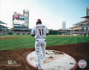 This officially licensed photo shows Philadelphia Phillies legend Jimmy Rollins waiting on deck.