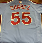 Game-used baseball jersey from Philadelphia Phillies star pitcher Ranger Suarez - authenticated by Major League Baseball