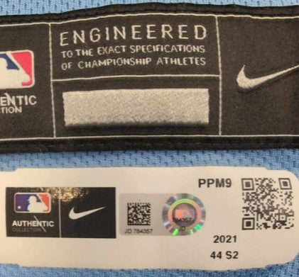 - Jersey has been authenticated by Major League Baseball - serially-numbered hologram of authentication is JD784357