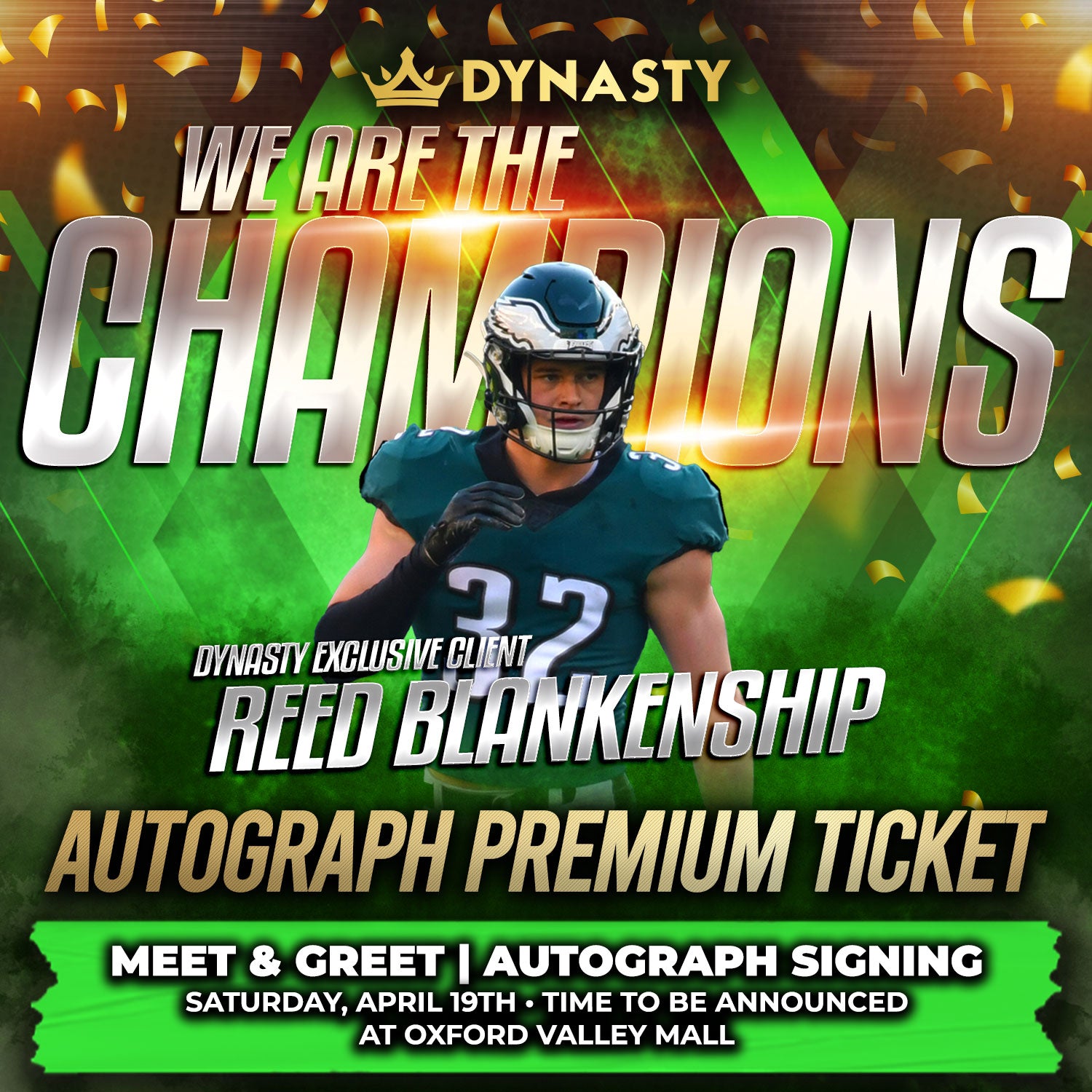 Making their very first public appearance since becoming Super Bowl Champions, Reed Blankenship, Trevor Keegan, Jalen Carter & Jordan Mailata will be stopping into Dynasty Sports on Saturday, April 19, 2025 (time TBD). They will be joined by two-time Super Bowl Champion and Birds legend, Brandon Graham, "The Architect" Howie Roseman, and the mastermind behind the top defense, Vic Fangio as the champions sign autographs and takes photos with their fans in attendance. This is an extremely rare opportunity to meet the team with tickets on sale now.