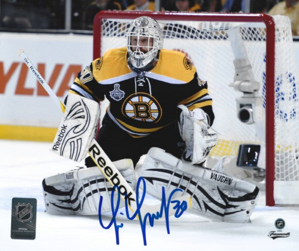 This officially licensed 2011 Stanley Cup Finals photo has been hand-signed by Bruins goalie legend, Stanley Cup champion, and Vezina Trophy winner Tim Thomas. It has been authenticated by Dynasty Sports during a public autograph signing.