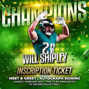 Will Shipley Inscription Ticket: $15-Entitles you to receive one inscription up to three words on your newly signed Will Shipley item. Inscription examples are, "SB Champ!", "Fly Eagles Fly", etc. Please note that inscription tickets must be purchased in conjunction with an autograph ticket. Inscriptions cannot be added on previously signed items.